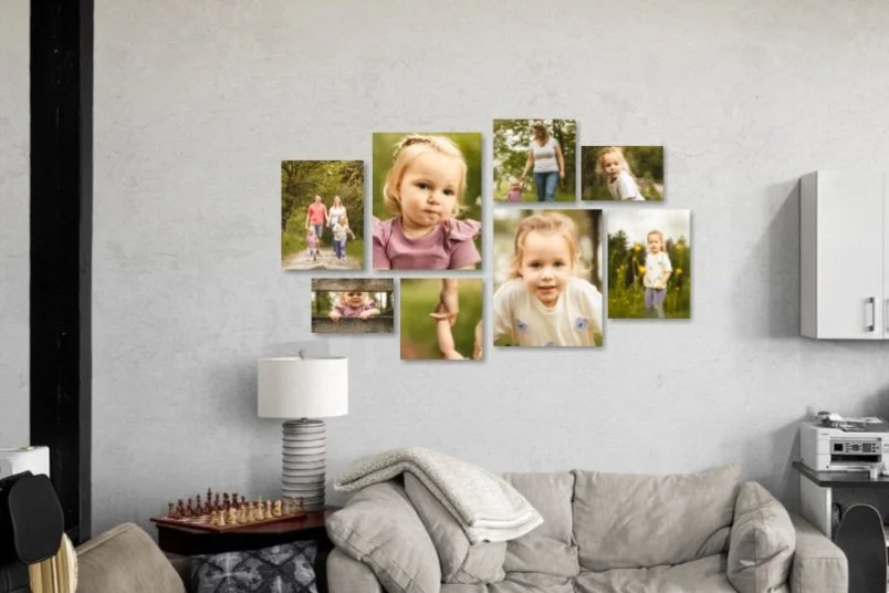 De ontwerp- en bestelsessie is een tweede afspraak waarbij ik jullie alle foto’s laat zien, meestal via zoom, maar het kan ook bij mij in de studio, of bij jullie thuis op de bank. Ik help met selecteren van jullie favoriete foto’s, geef advies over combinaties en materialen en laat direct op schaal zien hoe het resultaat aan jullie muur er uit ziet. Hier vind je meer uitleg.