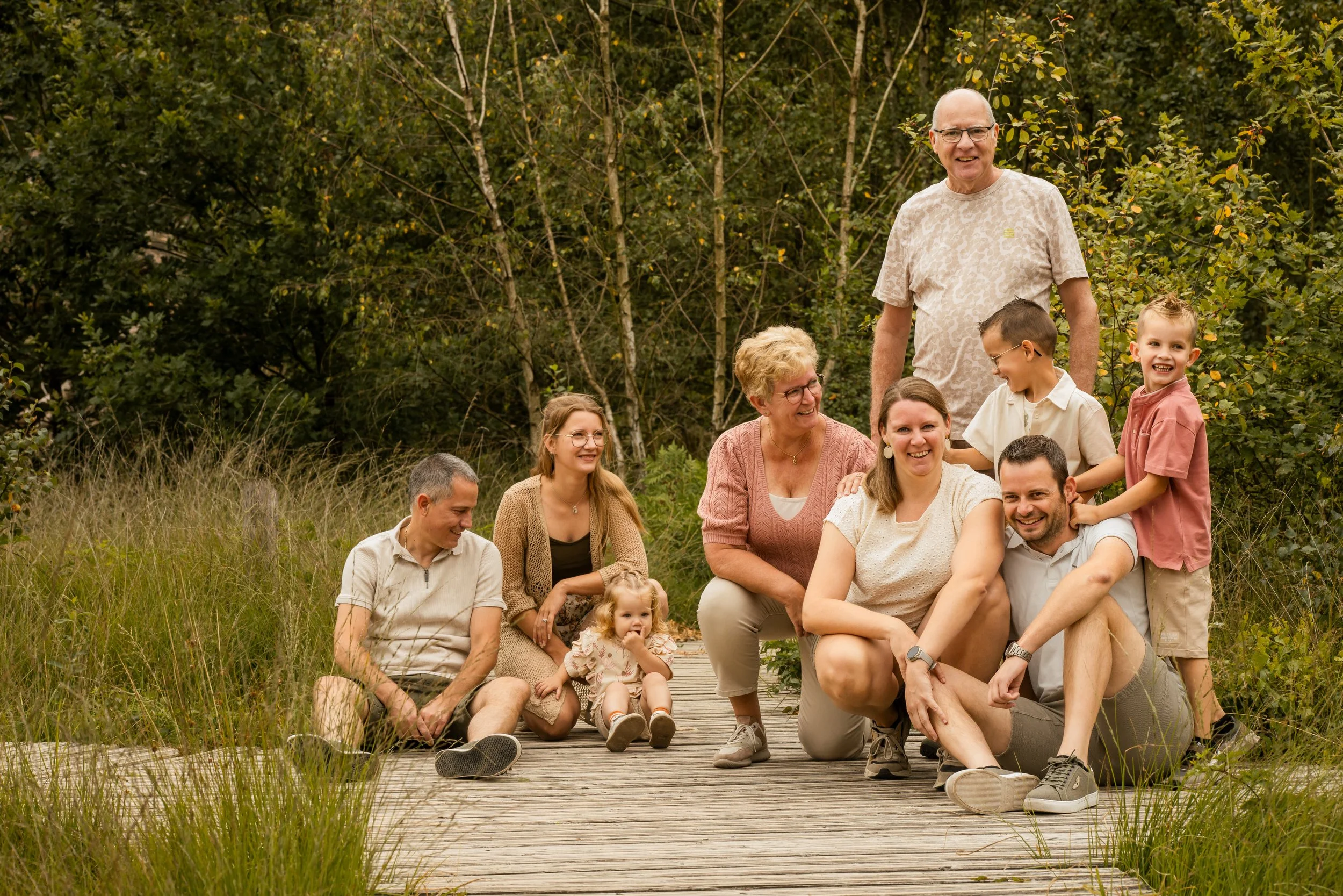 Deze familieshoot is bedoeld voor meergeneratiefoto’s: ouders met kinderen én kleinkinderen, of broers/zussen met hun eigen gezinnen. Kortom: meerdere huishoudens die samen op de foto willen.